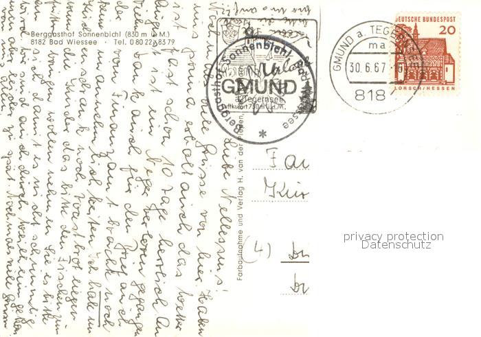 73725914 alte Postkarte Bad Wiessee Berggasthof Sonnenbichl postalisch gelaufen Erhaltung siehe scans [FriedD77] KatCode: 11110009182111