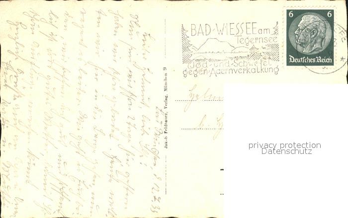 72423768 alte Postkarte Bad Wiessee Blick nach Tegernsee Kirche postalisch gelaufen Erhaltung siehe scans KatCode: 11110009182111