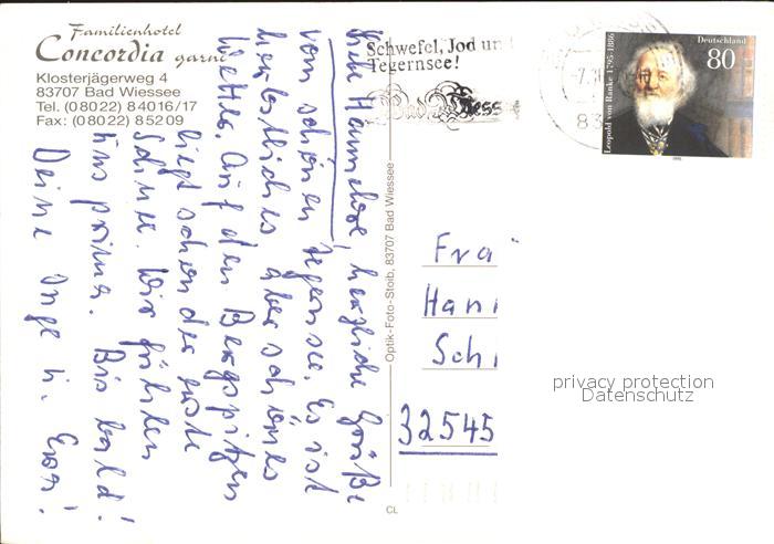 71952414 alte Postkarte Bad Wiessee Familienhotel Concordia postalisch gelaufen Erhaltung siehe scans KatCode: 11110009182111