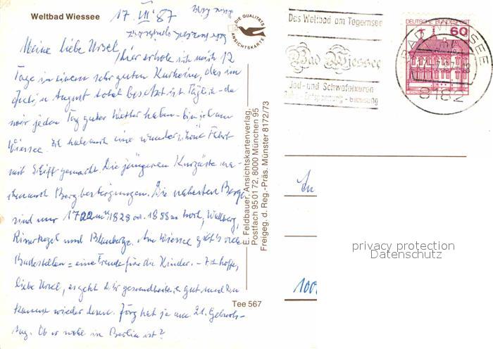 72638210 alte Postkarte Bad Wiessee Fliegeraufnahme postalisch gelaufen Erhaltung siehe scans [WerneD78] KatCode: 11110009182111