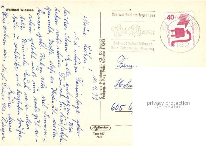 73244070 alte Postkarte Bad Wiessee Fliegeraufnahme postalisch gelaufen Erhaltung siehe scans [LiesaD40] KatCode: 11110009182111