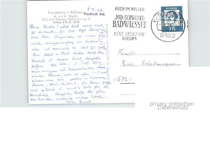 alte Postkarte Bad Wiessee Fliegeraufnahme Fremdenheim Felicitas postalisch gelaufen Erhaltung siehe scans