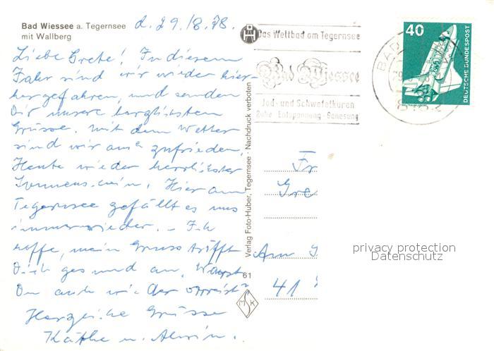73143196 alte Postkarte Bad Wiessee Fliegeraufnahme mit Tegernsee und Wallberg postalisch gelaufen Erhaltung siehe scans [WerneD78] KatCode: 11110009182111