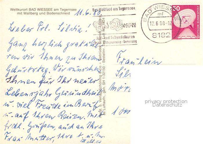 73045259 alte Postkarte Bad Wiessee Fliegeraufnahme mit Tegernsee Wallberg und Bodenschneid postalisch gelaufen Erhaltung siehe scans [WerneD78] KatCode: 11110009182111