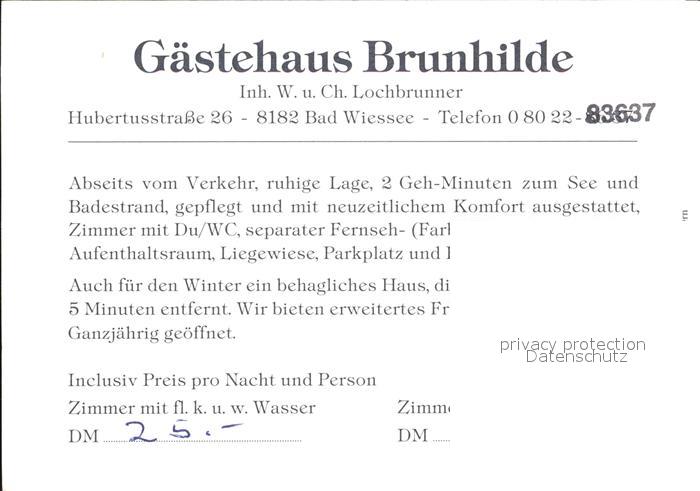 72469905 Bad Wiessee Gaestehaus Brunhilde postalisch nicht gelaufen Werbekarte (keine Postkarte) Erhaltung siehe scans KatCode: 11110009182111