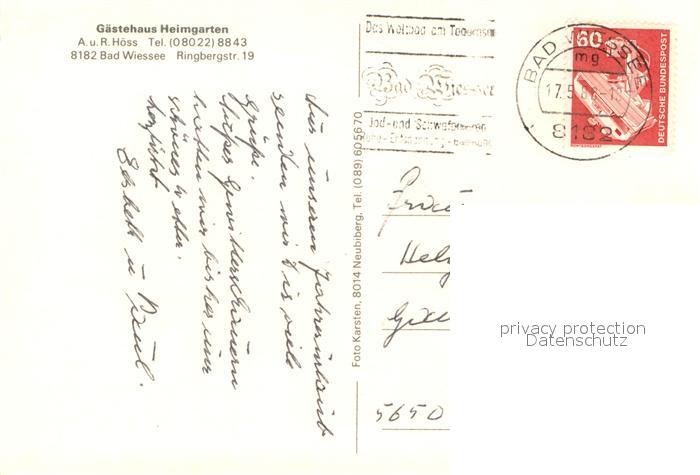73718920 alte Postkarte Bad Wiessee Gaestehaus Heimgarten postalisch gelaufen Erhaltung siehe scans [WerneD78] KatCode: 11110009182111