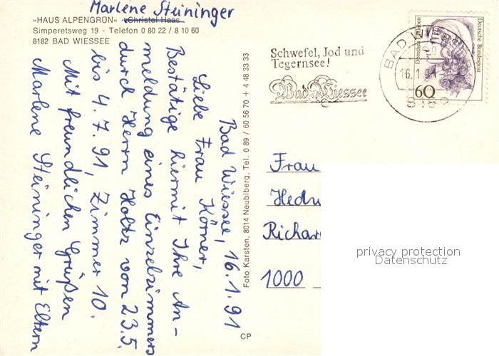 73542996 alte Postkarte Bad Wiessee Gaestehaus Pension Haus Alpengruen postalisch gelaufen Erhaltung siehe scans [FriedD77] KatCode: 11110009182111