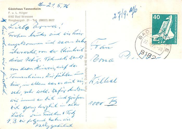 73896382 alte Postkarte Bad Wiessee Gaestehaus Tannenheim postalisch gelaufen Erhaltung siehe scans [FriedD77] KatCode: 11110009182111