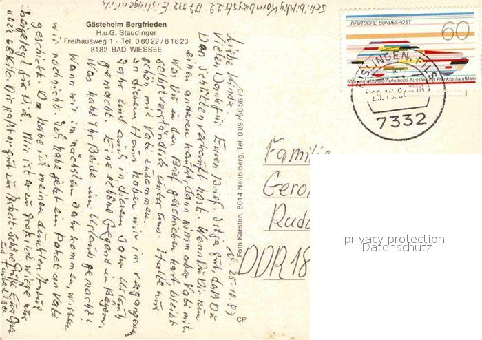 72855642 alte Postkarte Bad Wiessee Gasthaus Bergfrieden postalisch gelaufen Erhaltung siehe scans [LiesaD40] KatCode: 11110009182111