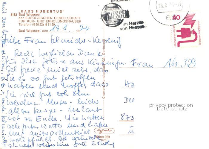 72941104 alte Postkarte Bad Wiessee Haus Hubertus postalisch gelaufen Erhaltung siehe scans [LiesaD40] KatCode: 11110009182111
