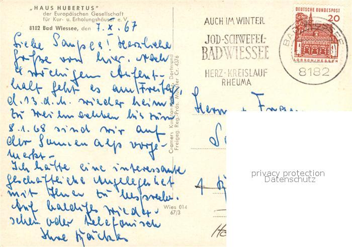 73054683 alte Postkarte Bad Wiessee Haus Hubertus postalisch gelaufen Erhaltung siehe scans [NatalD47] KatCode: 11110009182111
