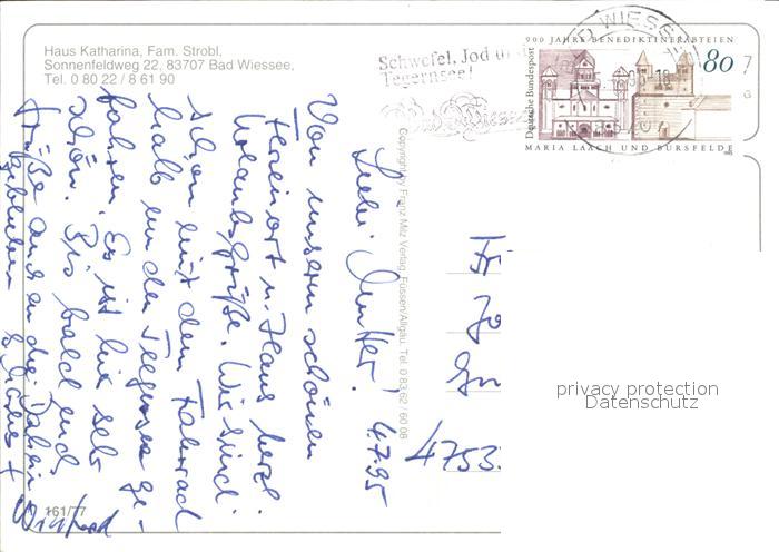 72277213 alte Postkarte Bad Wiessee Haus Katharina postalisch gelaufen Erhaltung siehe scans KatCode: 11110009182111