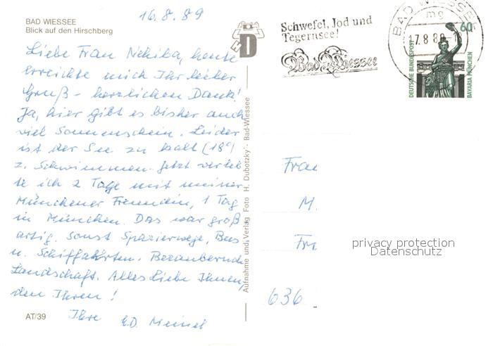 73205635 alte Postkarte Bad Wiessee Hirschberg postalisch gelaufen Erhaltung siehe scans [PaolaD17] KatCode: 11110009182111