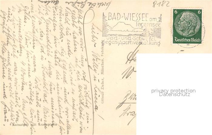43496198 alte Postkarte Bad Wiessee Holzbrunnen Blick zur Kirche postalisch gelaufen Erhaltung siehe scans [FriedD77] KatCode: 11110009182111