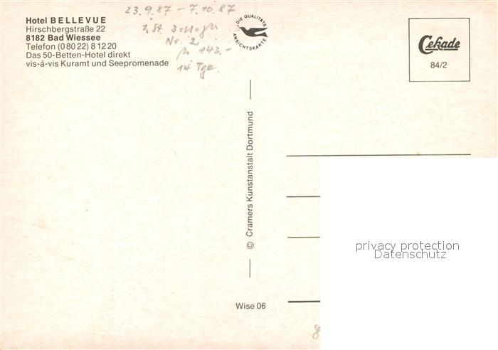 73054834 Bad Wiessee Hotel Bellevue postalisch nicht gelaufen Erhaltung siehe scans [WerneD78] KatCode: 11110009182111