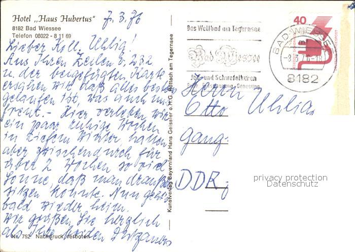 72506116 alte Postkarte Bad Wiessee Hotel Haus Hubertus postalisch gelaufen Erhaltung siehe scans KatCode: 11110009182111