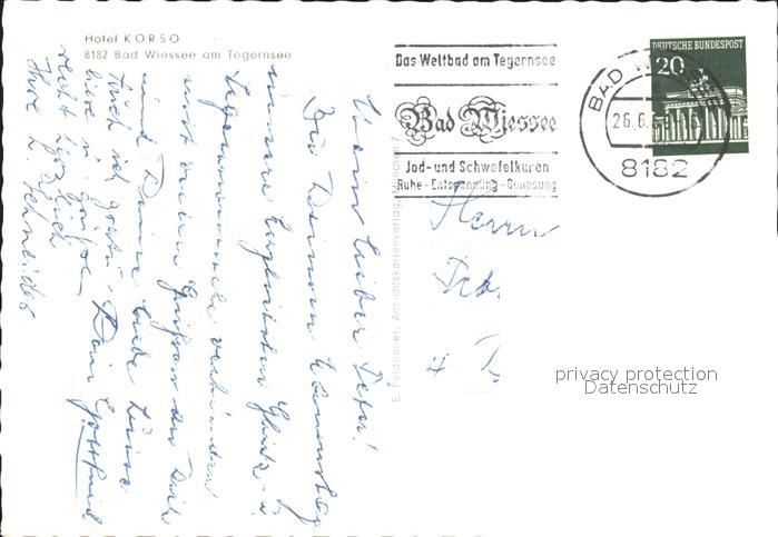 72251373 alte Postkarte Bad Wiessee Hotel Korsao postalisch gelaufen Erhaltung siehe scans KatCode: 11110009182111