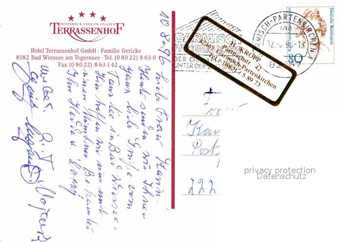 72687902 alte Postkarte Bad Wiessee Hotel Terrassenhof postalisch gelaufen Erhaltung siehe scans [NatalD47] KatCode: 11110009182111