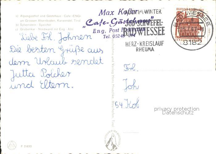 72310629 alte Postkarte Bad Wiessee Karwendel-Fahrt zur Eng Grosser Ahornboden postalisch gelaufen Erhaltung siehe scans KatCode: 11110009182111