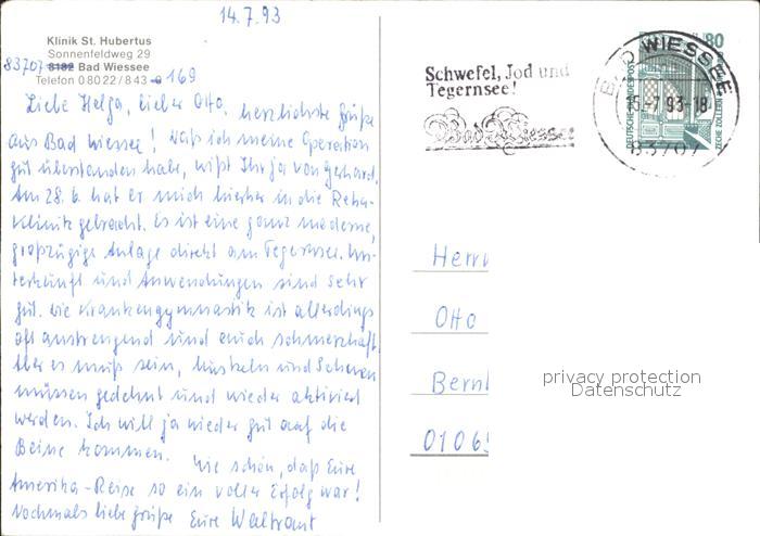 72372374 alte Postkarte Bad Wiessee Klinik St Hubertus Tegernsee Alpenpanorama Fliegeraufnahme postalisch gelaufen Erhaltung siehe scans KatCode: 11110009182111