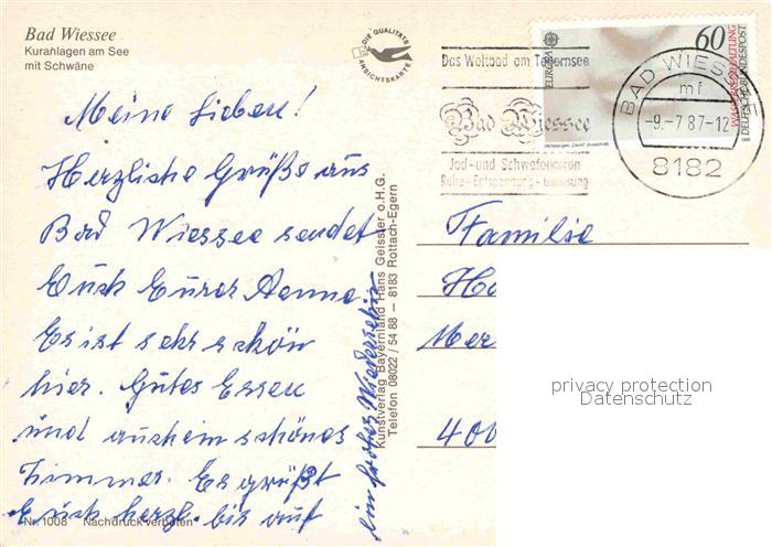 72749388 alte Postkarte Bad Wiessee Kuranlagen am See mit Schwaenen postalisch gelaufen Erhaltung siehe scans [LiesaD40] KatCode: 11110009182111