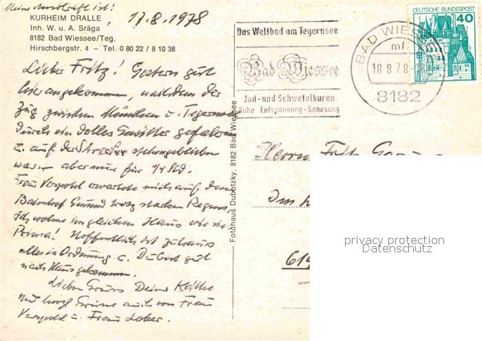 72684100 alte Postkarte Bad Wiessee Kurheim Dralle postalisch gelaufen Erhaltung siehe scans [AndreD76] KatCode: 11110009182111