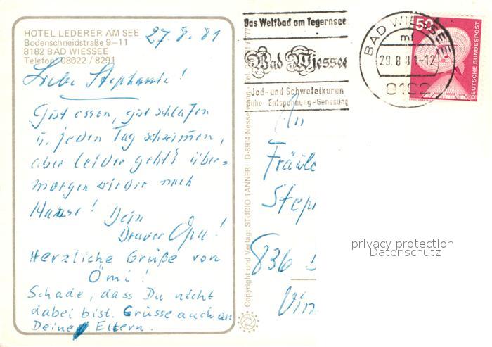 73651135 alte Postkarte Bad Wiessee Kurhotel Lederer am See Hallenbad Terrasse Badesteg Tegernsee Alpen postalisch gelaufen Erhaltung siehe scans [FriedD77] KatCode: 11110009182111