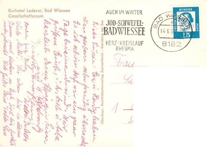 73904758 alte Postkarte Bad Wiessee Kurhotel Lederer Gesellschaftsraum postalisch gelaufen Erhaltung siehe scans [FriedD77] KatCode: 11110009182111