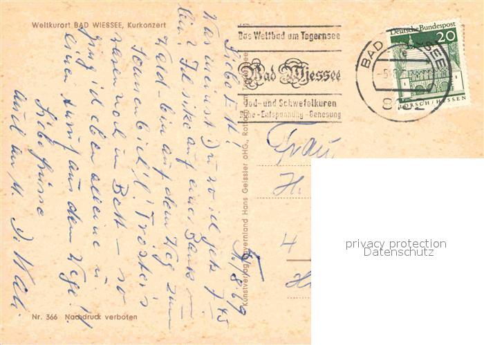 72695214 alte Postkarte Bad Wiessee Kurkonzert postalisch gelaufen Erhaltung siehe scans [FriedD77] KatCode: 11110009182111
