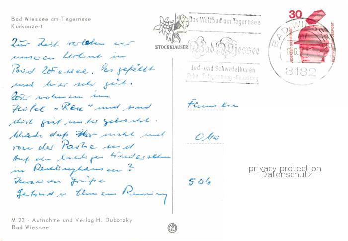 72705713 alte Postkarte Bad Wiessee Kurkonzert postalisch gelaufen Erhaltung siehe scans [AndreD76] KatCode: 11110009182111