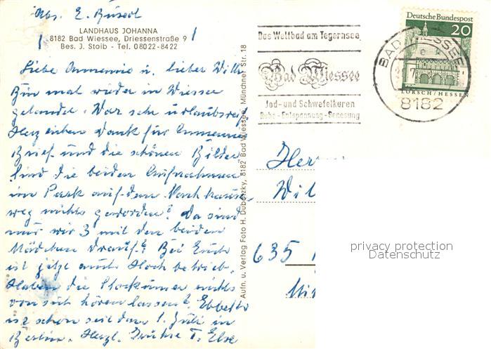 73156589 alte Postkarte Bad Wiessee Landhaus Johanna postalisch gelaufen Erhaltung siehe scans [FriedD77] KatCode: 11110009182111