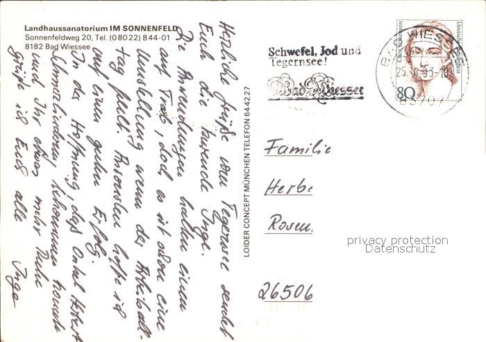 71907246 alte Postkarte Bad Wiessee Landhaussanatorium Im Sonnenfeld postalisch gelaufen Erhaltung siehe scans KatCode: 11110009182111