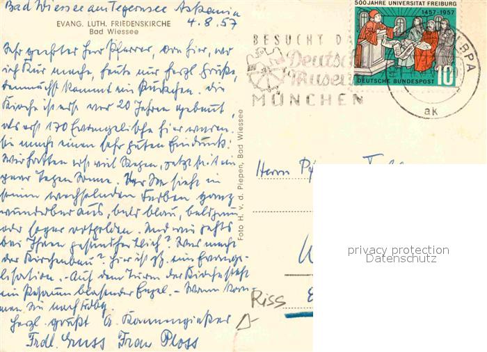 72644542 alte Postkarte Bad Wiessee Lutheranische Friedenskirche postalisch gelaufen Erhaltung siehe scans [AndreD76] KatCode: 11110009182111