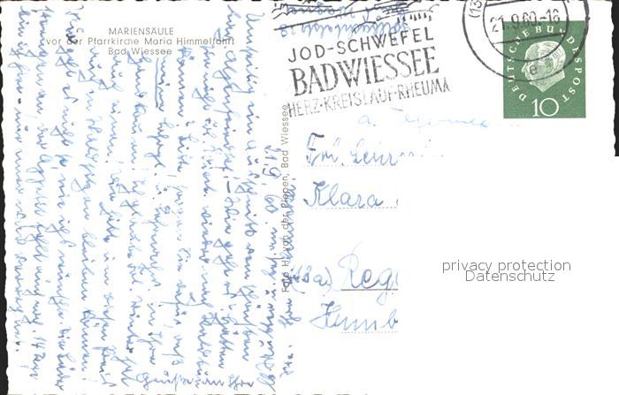 72133925 alte Postkarte Bad Wiessee Mariensaeule postalisch gelaufen Erhaltung siehe scans KatCode: 11110009182111