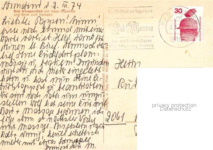 72771125 alte Postkarte Bad Wiessee mit Haus Hubertus und Kampen Fliegeraufnahme postalisch gelaufen Erhaltung siehe scans [WerneD78] KatCode: 11110009182111