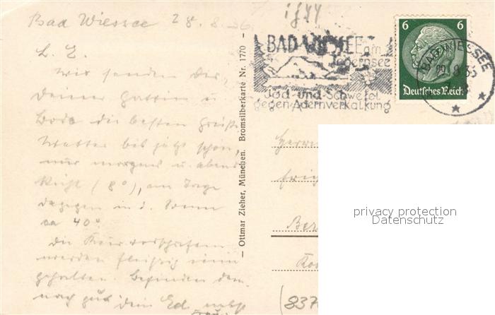 43253678 alte Postkarte Bad Wiessee Panorama Blick gegen Tegernsee Alpen postalisch gelaufen Erhaltung siehe scans [FriedD77] KatCode: 11110009182111
