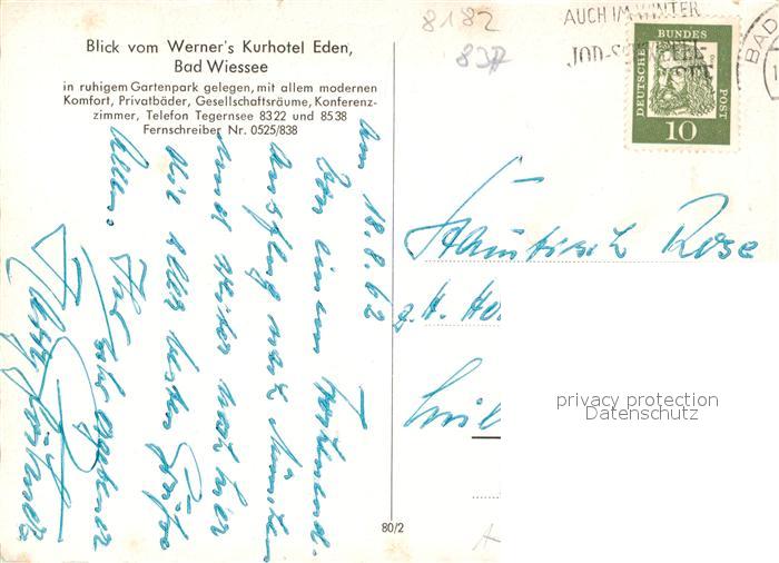 73335553 alte Postkarte Bad Wiessee Panorama Blick vom Werner’s Kurhotel Eden Gartenpark Tegernsee Alpen postalisch gelaufen Erhaltung siehe scans [FriedD77] KatCode: 11110009182111