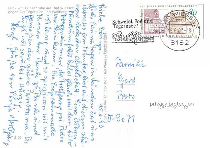 72652102 alte Postkarte Bad Wiessee Panorama Blick von Prinzenruhe Wallberg Mangfallgebirge postalisch gelaufen Erhaltung siehe scans [FriedD77] KatCode: 11110009182111