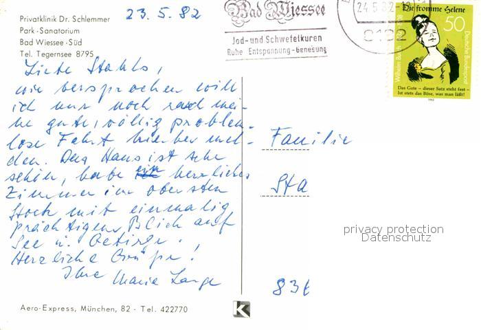 72905480 alte Postkarte Bad Wiessee Privatklinik Dr. Schlemmer postalisch gelaufen Erhaltung siehe scans [NatalD47] KatCode: 11110009182111