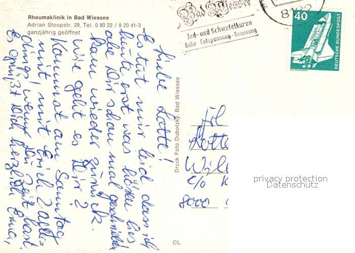 72905486 alte Postkarte Bad Wiessee Rheumaklinik postalisch gelaufen Erhaltung siehe scans [NatalD47] KatCode: 11110009182111