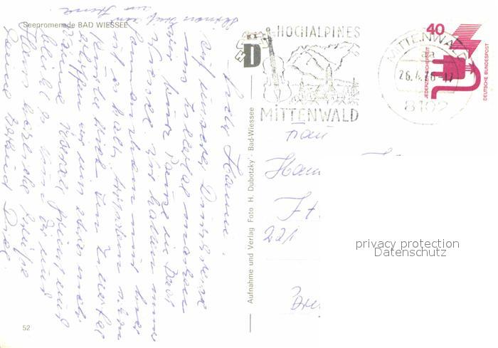 72764327 alte Postkarte Bad Wiessee Seepromenade postalisch gelaufen Erhaltung siehe scans [LiesaD40] KatCode: 11110009182111