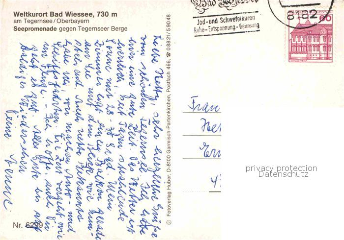 72744902 alte Postkarte Bad Wiessee Seepromenade gegen Tegernseer Berge postalisch gelaufen Erhaltung siehe scans [FriedD77] KatCode: 11110009182111