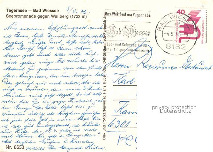 72855980 alte Postkarte Bad Wiessee Seepromenade gegen Wallberg Mangfallgebirge postalisch gelaufen Erhaltung siehe scans [FriedD77] KatCode: 11110009182111