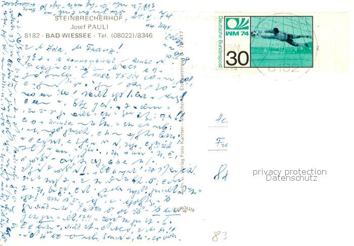 73064440 alte Postkarte Bad Wiessee Steinbrecherhof postalisch gelaufen Erhaltung siehe scans [NatalD47] KatCode: 11110009182111
