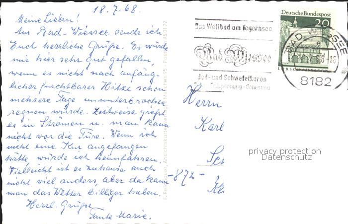 72261463 alte Postkarte Bad Wiessee Tegernsee postalisch gelaufen Erhaltung siehe scans KatCode: 11110009182111