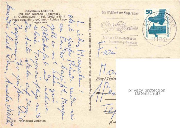 74096090 alte Postkarte BAD WIEssEE Tegernsee Bayern Gaestehaus Astoria postalisch gelaufen Erhaltung siehe scans [WerneD78] KatCode: 11110009182111