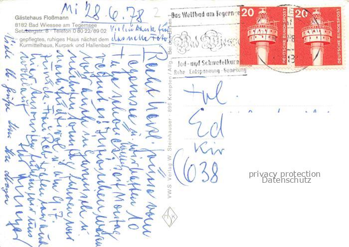 74149303 alte Postkarte BAD WIEssEE Tegernsee Bayern Gaestehaus Flossmann postalisch gelaufen Erhaltung siehe scans [FriedD77] KatCode: 11110009182111