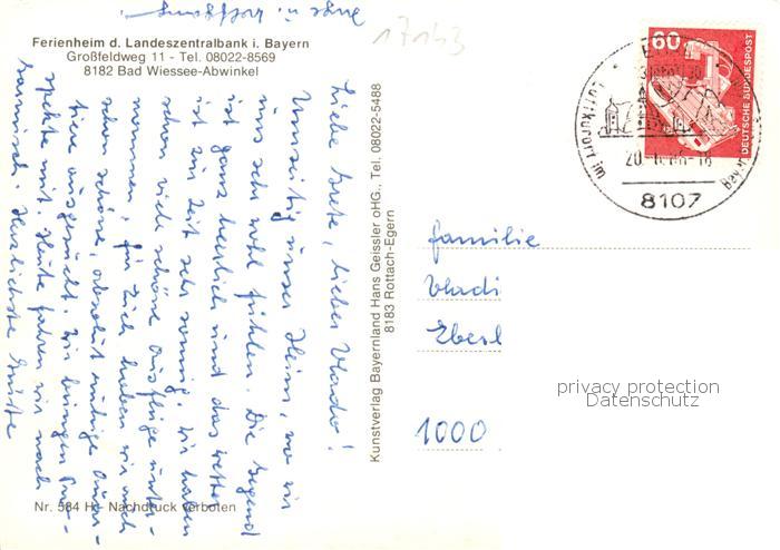 73796414 alte Postkarte Bad Wiessee Tegernsee Ferienheim der Landeszentralbank Bayern postalisch gelaufen Erhaltung siehe scans [WerneD78] KatCode: 11110009182111