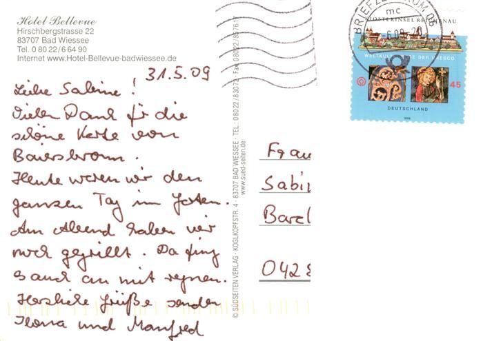73877503 alte Postkarte Bad Wiessee Tegernsee Hotel Bellevue postalisch gelaufen Erhaltung siehe scans [WerneD78] KatCode: 11110009182111