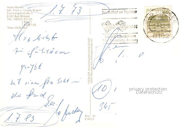 73725386 alte Postkarte Bad Wiessee Tegernsee Hotel Marina Gastraeume Hallenbad postalisch gelaufen Erhaltung siehe scans [WerneD78] KatCode: 11110009182111